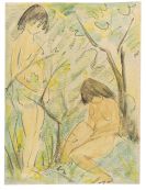 Weib mit Inder auf Teppich / Früchte II (Rückseite)